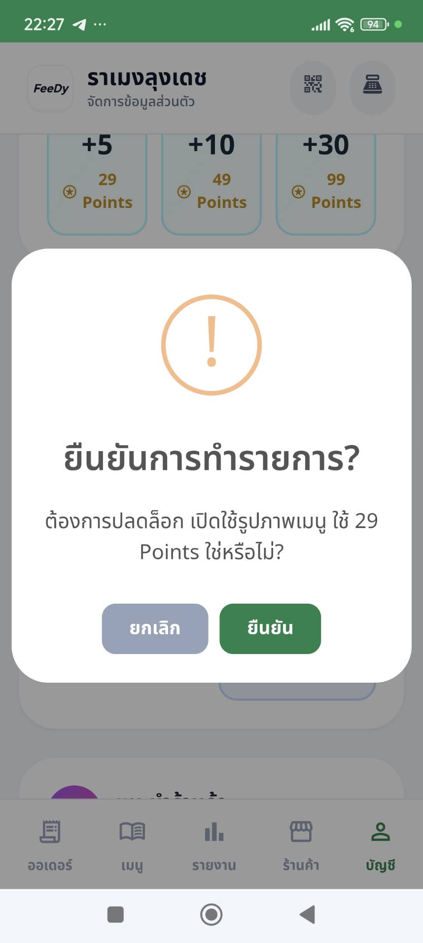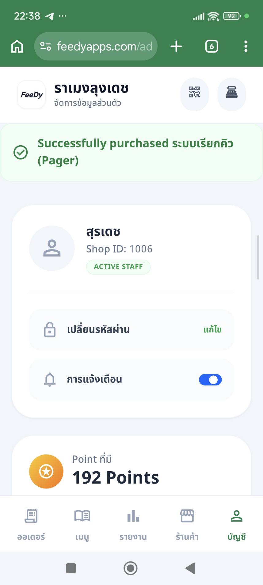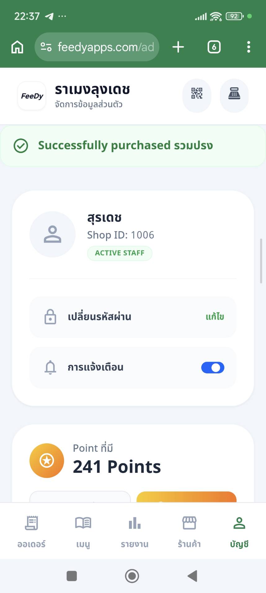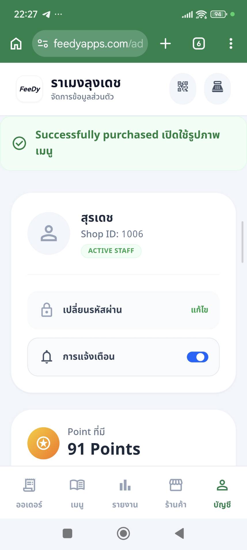 หากทางFeedy ตรวจสอบสลิปการโอนเงินเรียบร้อยแล้ว point จะถูกเพิ่มเข้าสู่ระบบ
