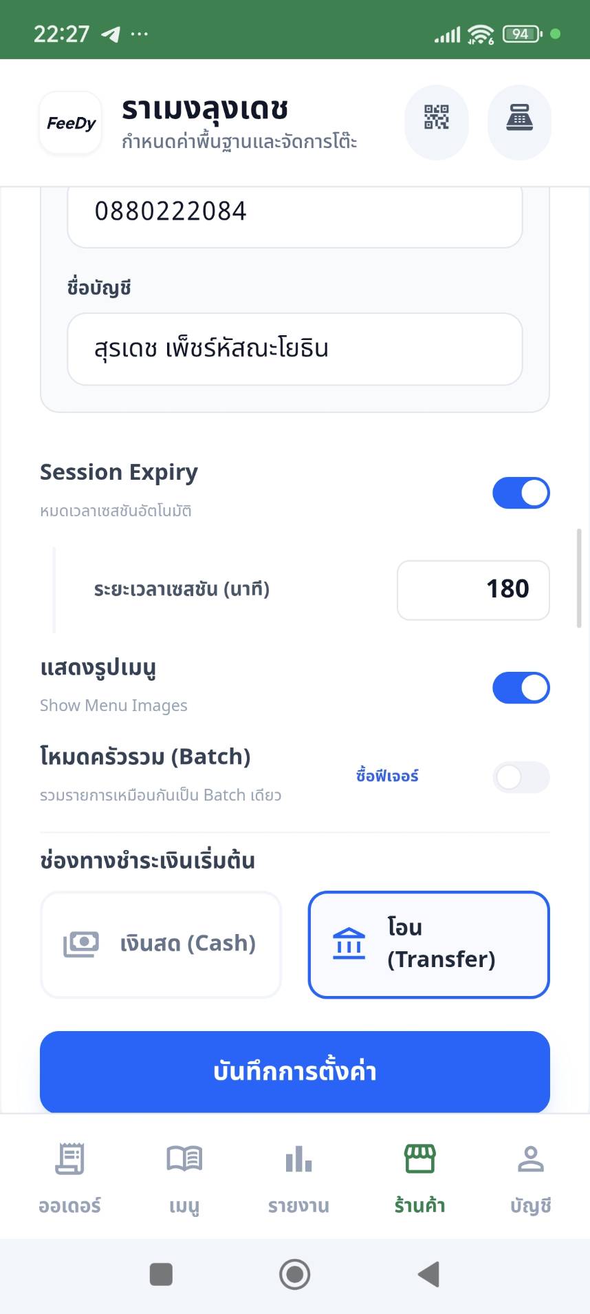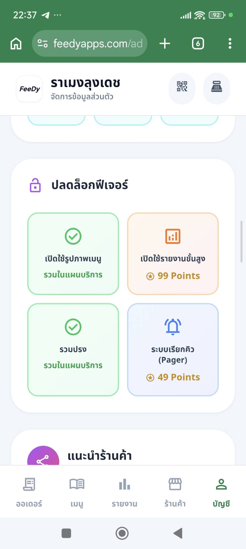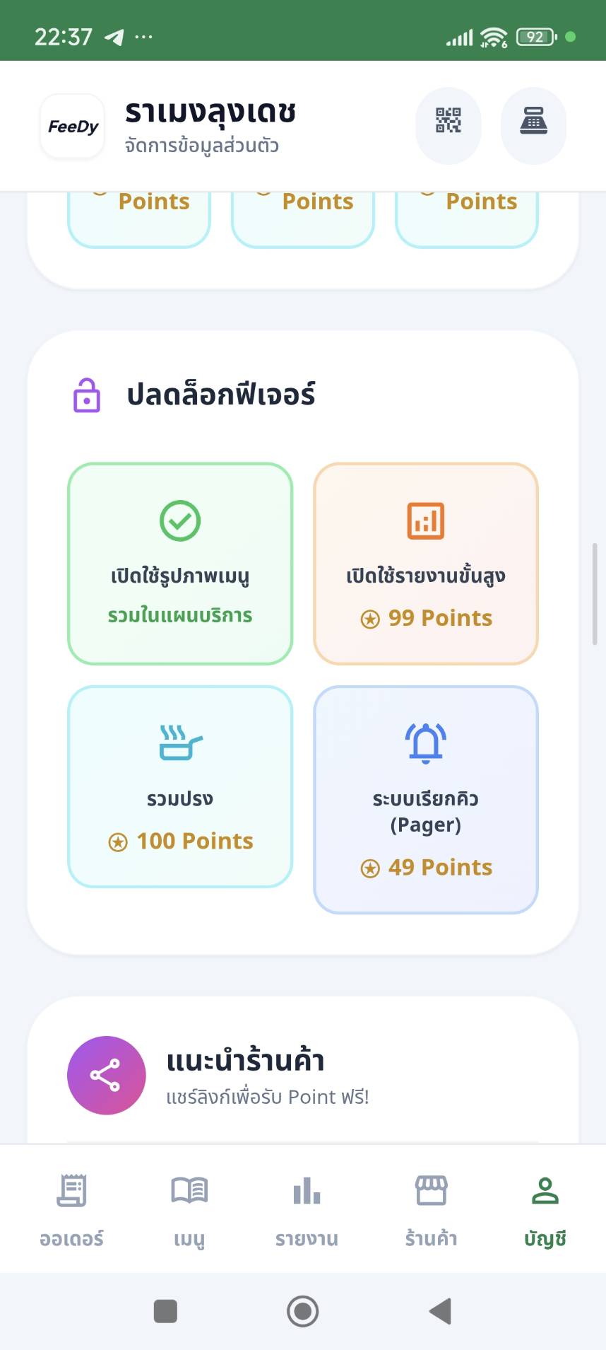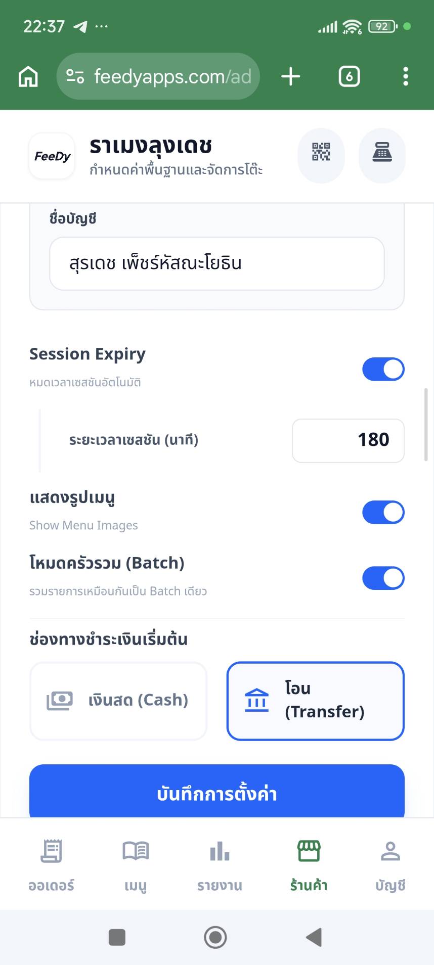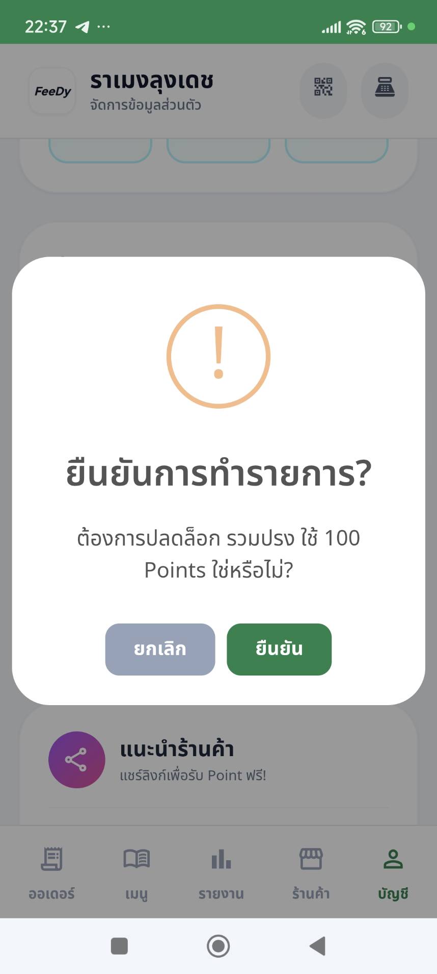 สามารถเปิด feature นี้ได้ที่เมนู ร้านค้า โดยในส่วนของ feature รวมปรุง จะเปิดให้สามารถปรับเปลี่ยนได้