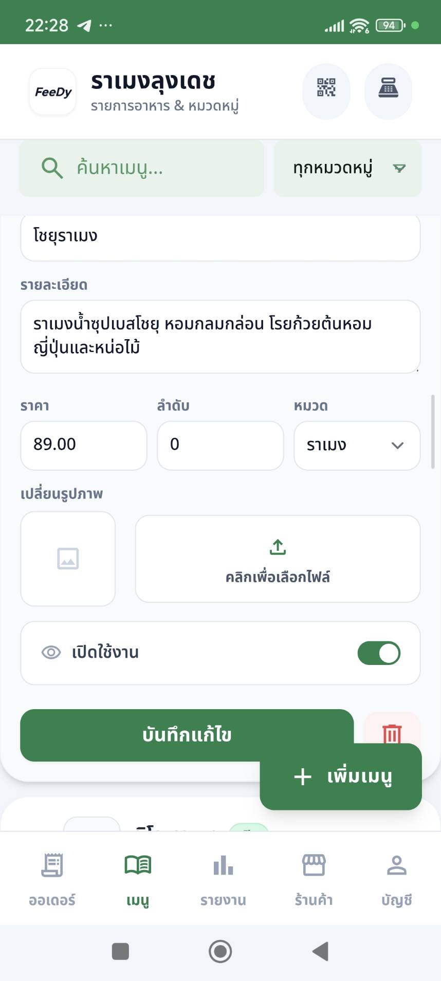 เมนูจะมีให้ upload รูปภาพเมนู เพิ่มขึ้นมา