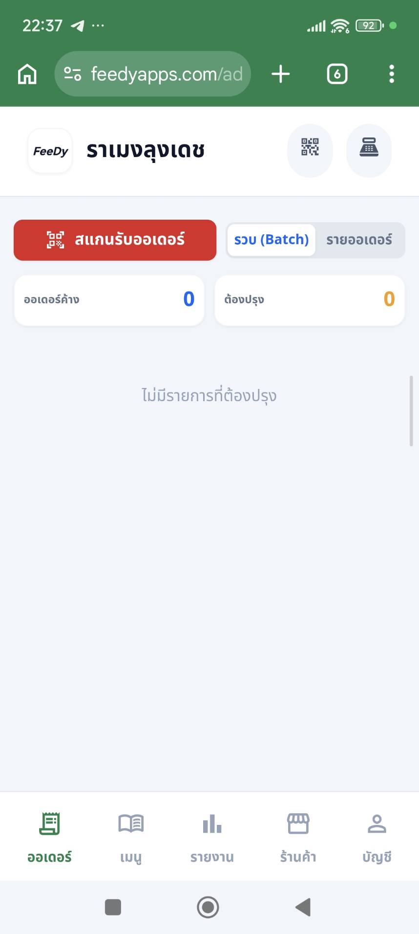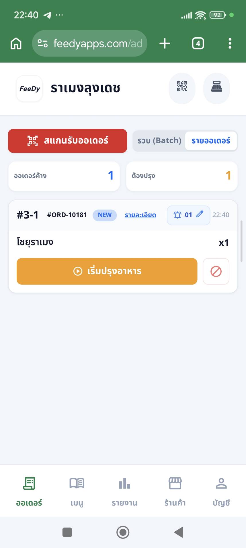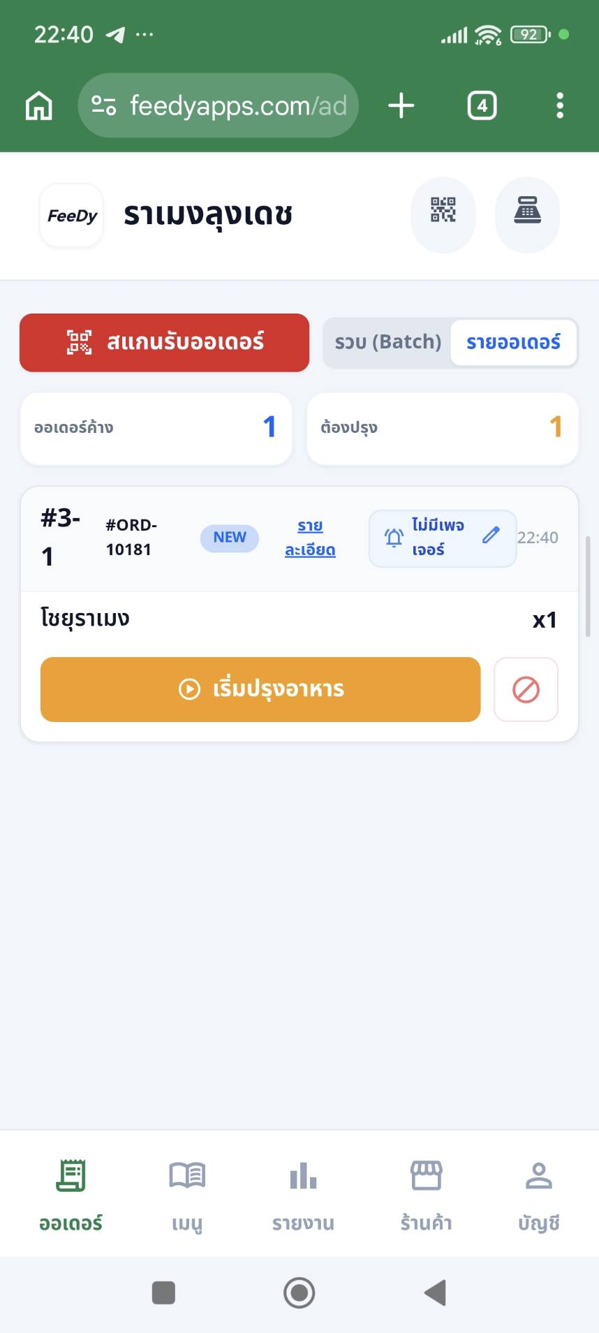 ในหน้าออเดอร์ สำหรับออเดอร์ที่ชำระเงินแล้ว จะมีปุ่มให้ใส่คิว