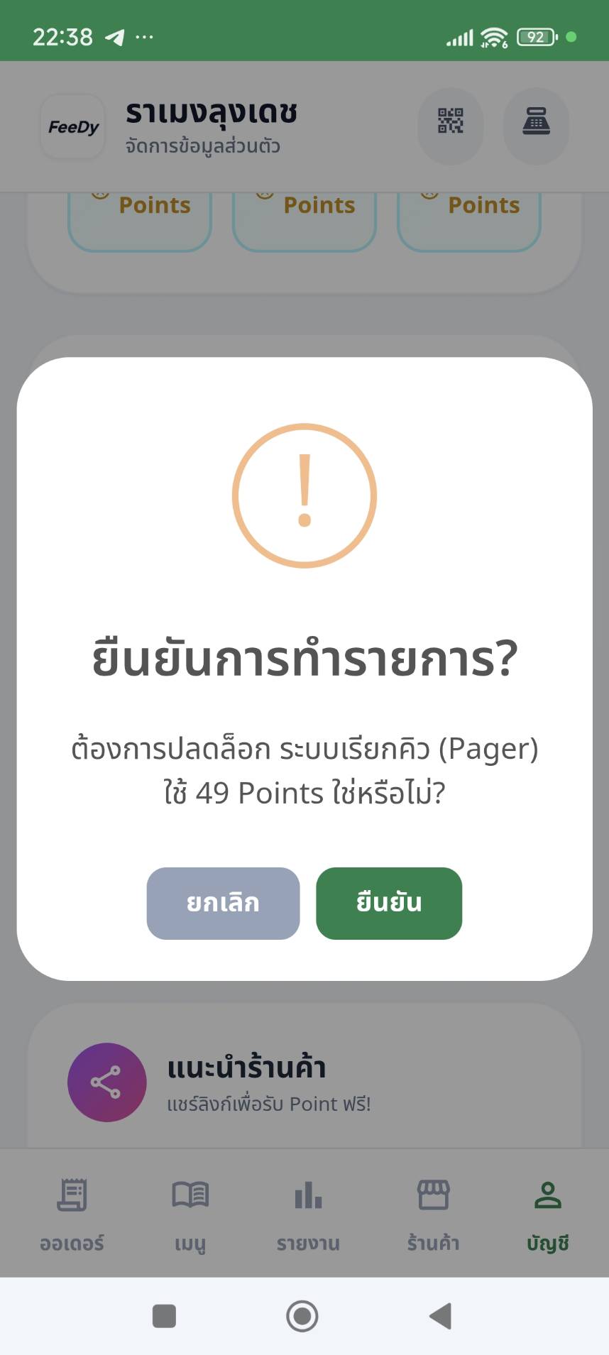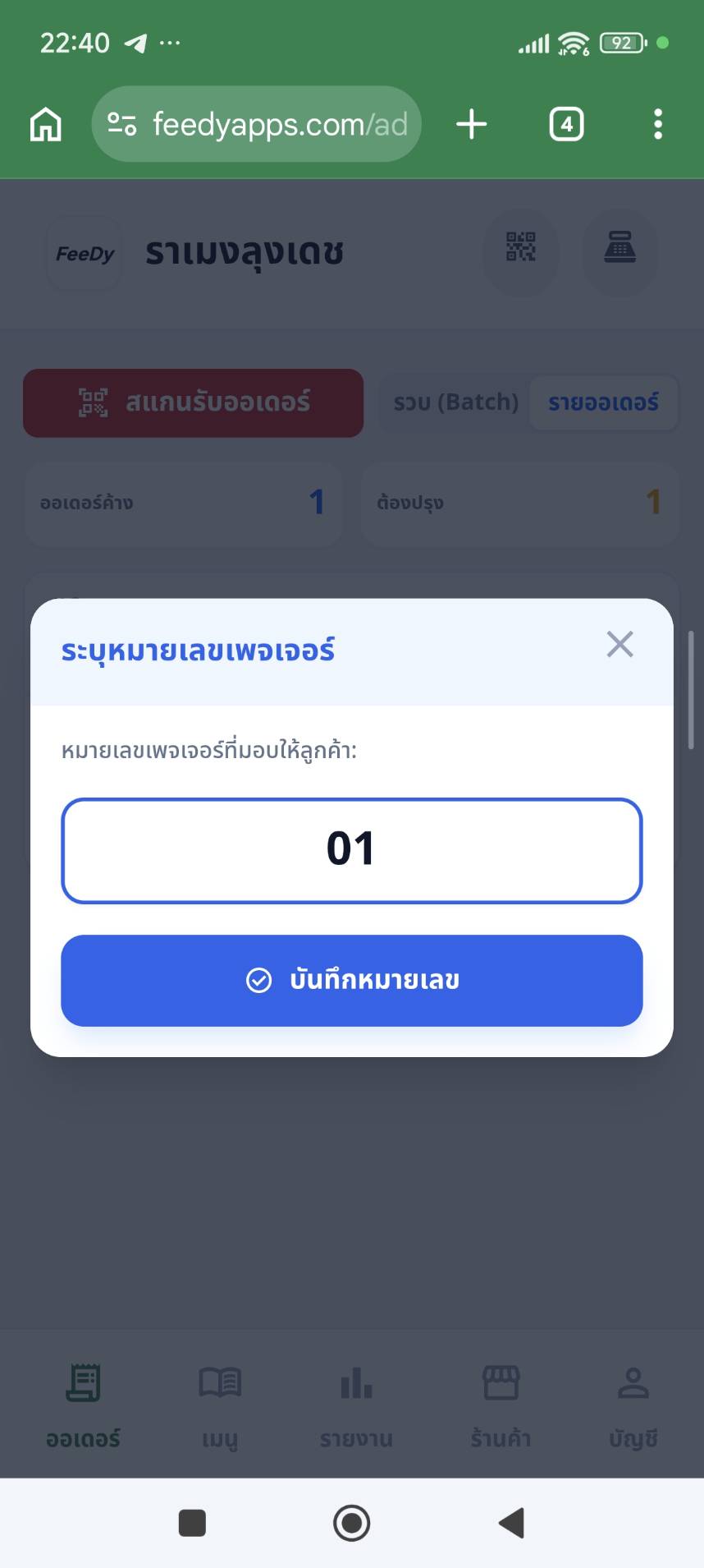 เพิ่มคิวให้กับออเดอร์ โดยคิวจะใช้ผ่าน Pager หรือ ทำบัตรคิวขึ้นมาเองก็ได้