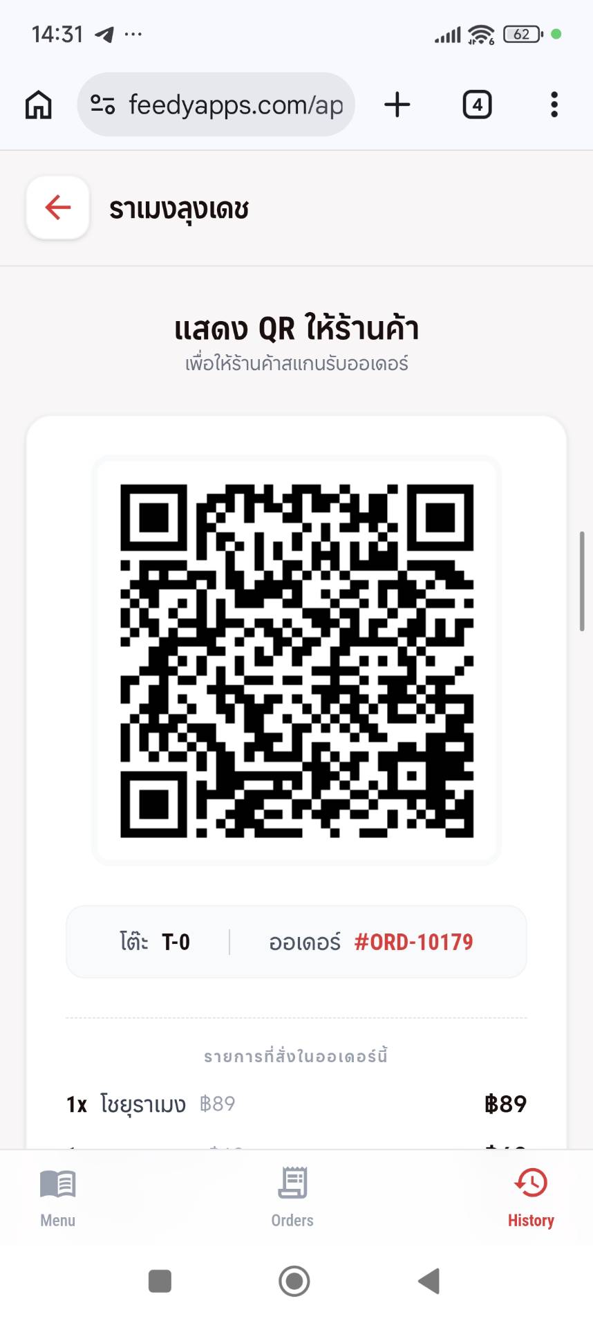 ลูกค้าสแกน QR Code ที่โต๊ะหรือหน้าร้านเพื่อสั่งอาหาร