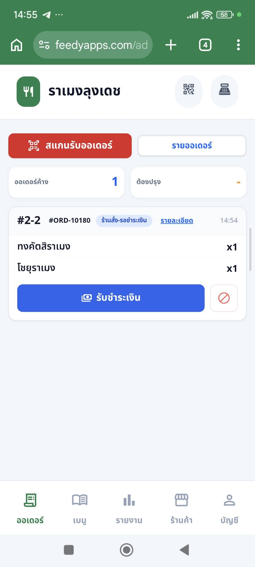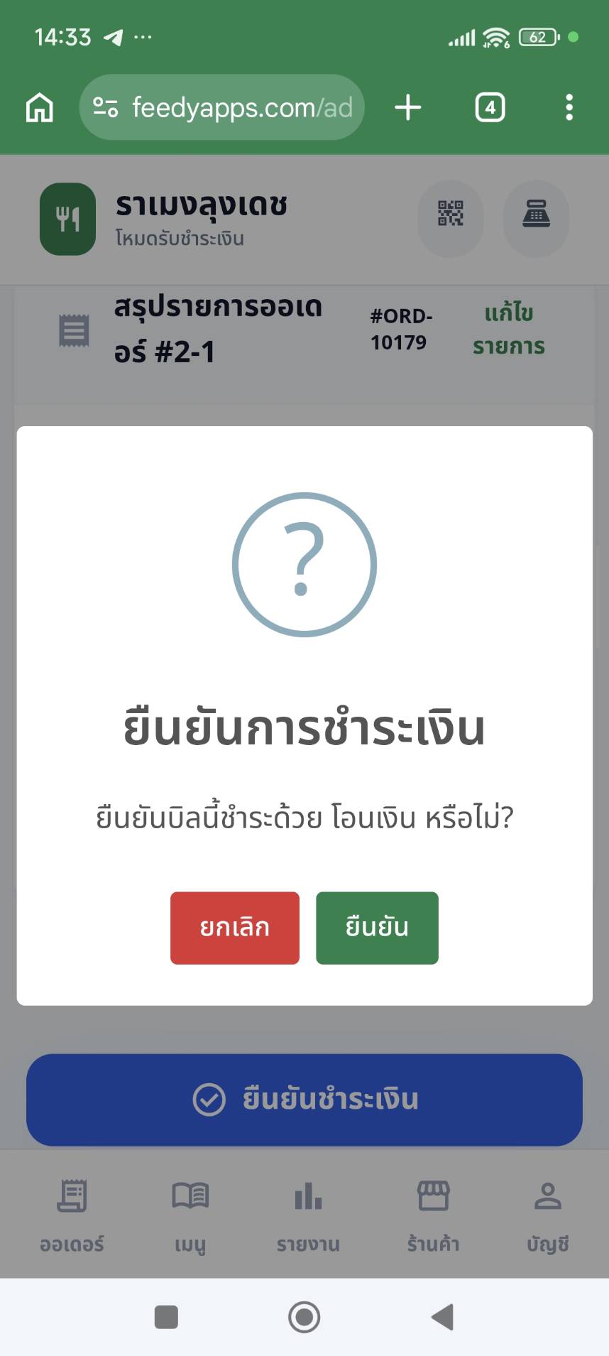 กดปุ่ม "รับออเดอร์" (Accept) เพื่อยืนยัน