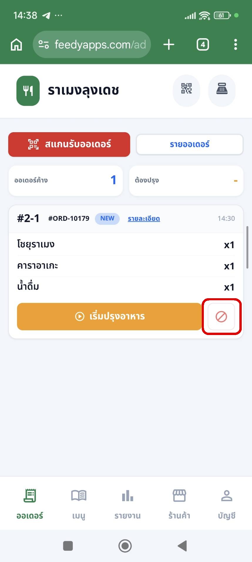 ที่รายการออเดอร์ที่ต้องการยกเลิก ให้กดปุ่ม "Cancel"