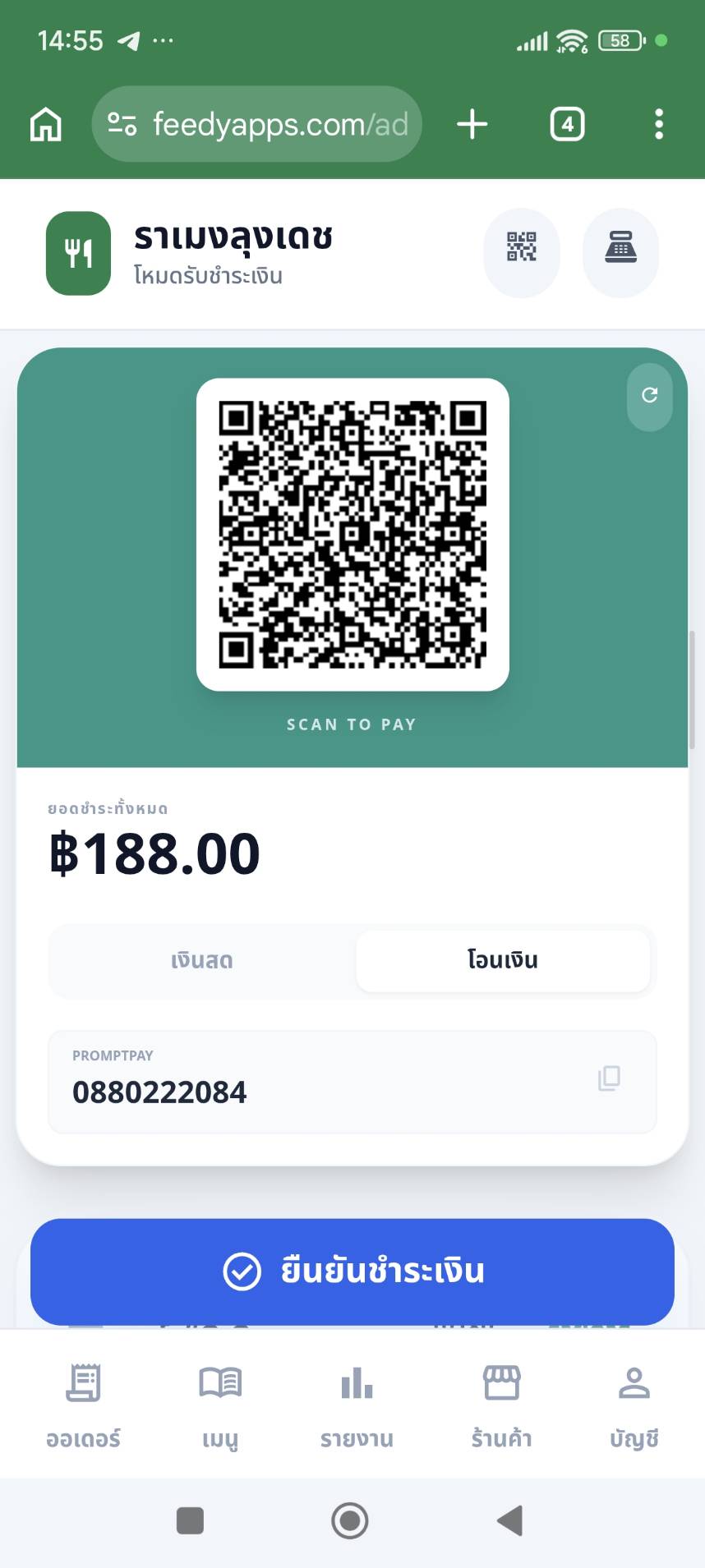 ระบบจะสร้างออเดอร์สถานะ "รอชำระเงิน" ให้ทันที